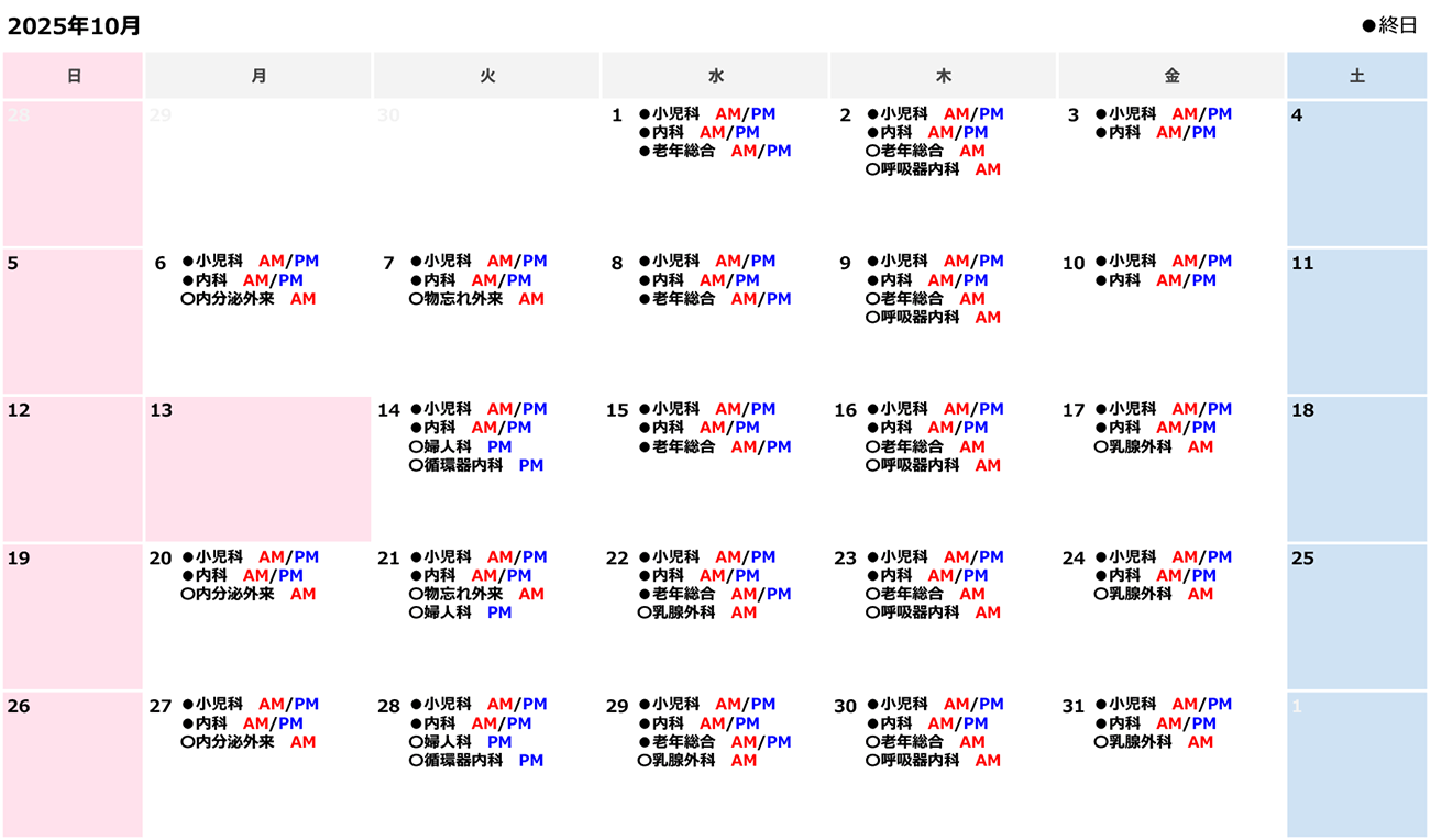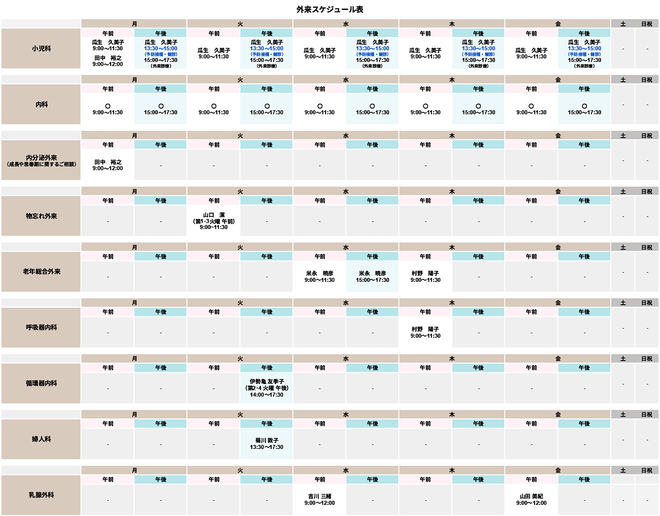 診療時間 | 月 | 火 | 水 | 木 | 金 | 土 | 日祝 |